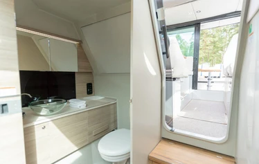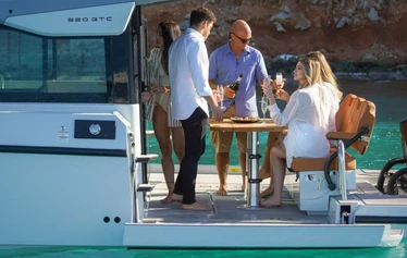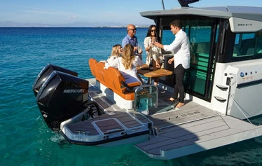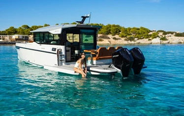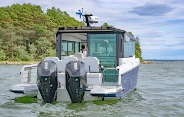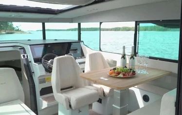 The Saxdor 320 GTC is unique on it's class due her economic and performance-oriented hull with low center of gravity, low weight, sharp entry, and a twin stepped hull. saxdor create's a unique driving experience in all kinds of seas and weathers anywhere where you desire to go. Perfectly equipped for a day cruise and for extended voyages as well. With this boat you can enjoy the panoramic views of the Helsinki archipelago whatever the weather is.